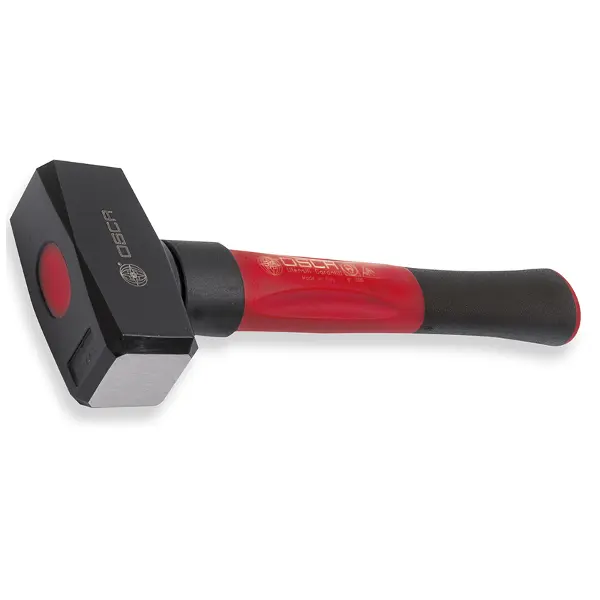 Elektro-endüktif sertleştirilmiş C45 çelik, yanları düzleştirilmiş, cilalanmış, cilalanmış çarpma yüzeyleri ve köreltilmiş kenarlar. Patentli üç bileşenli sap: naylon, kaymaz kauçuk tutma yeri ve koruma, alüminyum alaşımlı çekirdek. Titreşimsiz. Çelik kama ve kırmızı epoksi reçine ile mekanik olarak sabitlenmiş başlık.